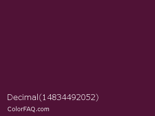 Decimal 14834492052 Color is a very dark magenta color and the nearest color is Wine Berry #591d35. Hex code #501236 and RGB value is rgb(80,18,54). In RGB color space, this color is composed of 31% red, 7% green, 21% blue, In CMYK color space, this color is composed of 0% cyan, 78% magenta, 33% yellow , 69% black , In HSL color space, this color has a hue angle of 325° , 63% saturation and 19% lightness.