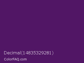 Decimal 14835329281 Color is a dark purple color and the nearest color is Honey Flower #4f1c70. Hex code #511665 and RGB value is rgb(81,22,101). In RGB color space, this color is composed of 32% red, 9% green, 40% blue, In CMYK color space, this color is composed of 20% cyan, 78% magenta, 0% yellow , 60% black , In HSL color space, this color has a hue angle of 285° , 64% saturation and 24% lightness.