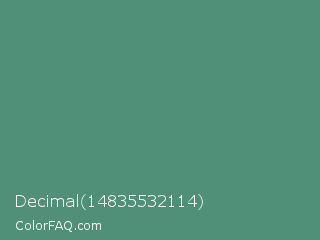 Decimal 14835532114 Color is a normal green color and the nearest color is Wintergreen Dream #56887d. Hex code #519078 and RGB value is rgb(81,144,120). In RGB color space, this color is composed of 32% red, 56% green, 47% blue, In CMYK color space, this color is composed of 44% cyan, 0% magenta, 17% yellow , 44% black , In HSL color space, this color has a hue angle of 157° , 28% saturation and 44% lightness.