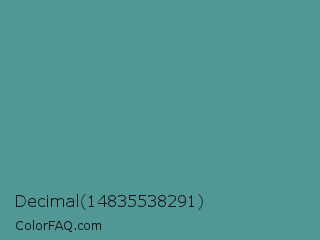 Decimal 14835538291 Color is a normal cyan color and the nearest color is Polished Pine #5da493. Hex code #519795 and RGB value is rgb(81,151,149). In RGB color space, this color is composed of 32% red, 59% green, 58% blue, In CMYK color space, this color is composed of 46% cyan, 0% magenta, 1% yellow , 41% black , In HSL color space, this color has a hue angle of 178° , 30% saturation and 45% lightness.