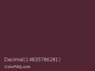 Decimal 14835786281 Color is a dark rose color and the nearest color is Livid Brown #4d282e. Hex code #522535 and RGB value is rgb(82,37,53). In RGB color space, this color is composed of 32% red, 15% green, 21% blue, In CMYK color space, this color is composed of 0% cyan, 55% magenta, 35% yellow , 68% black , In HSL color space, this color has a hue angle of 339° , 38% saturation and 23% lightness.