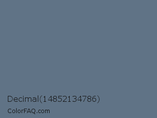 Decimal 14852134786 Color is a normal blue color and the nearest color is Pale Sky #6e7783. Hex code #607386 and RGB value is rgb(96,115,134). In RGB color space, this color is composed of 38% red, 45% green, 53% blue, In CMYK color space, this color is composed of 28% cyan, 14% magenta, 0% yellow , 47% black , In HSL color space, this color has a hue angle of 210° , 17% saturation and 45% lightness.