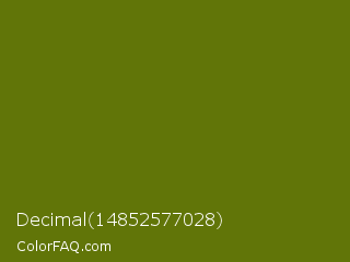 Decimal 14852577028 Color is a dark lime color and the nearest color is Avocado #568203. Hex code #617508 and RGB value is rgb(97,117,8). In RGB color space, this color is composed of 38% red, 46% green, 3% blue, In CMYK color space, this color is composed of 17% cyan, 0% magenta, 93% yellow , 54% black , In HSL color space, this color has a hue angle of 71° , 87% saturation and 25% lightness.