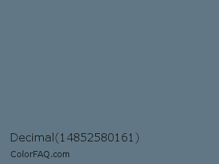 Decimal 14852580161 Color is a normal blue color and the nearest color is Pale Sky #6e7783. Hex code #617785 and RGB value is rgb(97,119,133). In RGB color space, this color is composed of 38% red, 47% green, 52% blue, In CMYK color space, this color is composed of 27% cyan, 11% magenta, 0% yellow , 48% black , In HSL color space, this color has a hue angle of 203° , 16% saturation and 45% lightness.