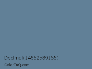 Decimal 14852589155 Color is a normal blue color and the nearest color is Lynch #697e9a. Hex code #618097 and RGB value is rgb(97,128,151). In RGB color space, this color is composed of 38% red, 50% green, 59% blue, In CMYK color space, this color is composed of 36% cyan, 15% magenta, 0% yellow , 41% black , In HSL color space, this color has a hue angle of 206° , 22% saturation and 49% lightness.