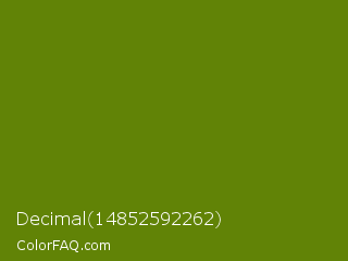Decimal 14852592262 Color is a dark lime color and the nearest color is Avocado #568203. Hex code #618306 and RGB value is rgb(97,131,6). In RGB color space, this color is composed of 38% red, 51% green, 2% blue, In CMYK color space, this color is composed of 26% cyan, 0% magenta, 95% yellow , 49% black , In HSL color space, this color has a hue angle of 76° , 91% saturation and 27% lightness.