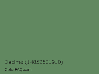 Decimal 14852621910 Color is a normal green color and the nearest color is Glade Green #61845f. Hex code #618860 and RGB value is rgb(97,136,96). In RGB color space, this color is composed of 38% red, 53% green, 38% blue, In CMYK color space, this color is composed of 29% cyan, 0% magenta, 29% yellow , 47% black , In HSL color space, this color has a hue angle of 119° , 17% saturation and 45% lightness.