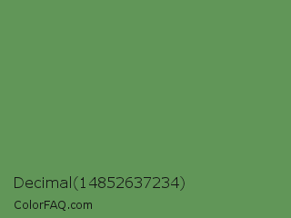 Decimal 14852637234 Color is a normal green color and the nearest color is Russian Green #679267. Hex code #619658 and RGB value is rgb(97,150,88). In RGB color space, this color is composed of 38% red, 59% green, 35% blue, In CMYK color space, this color is composed of 35% cyan, 0% magenta, 41% yellow , 41% black , In HSL color space, this color has a hue angle of 111° , 26% saturation and 47% lightness.