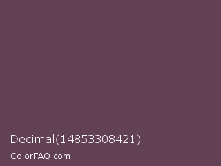 Decimal 14853308421 Color is a normal magenta color and the nearest color is Eggplant #614051. Hex code #624155 and RGB value is rgb(98,65,85). In RGB color space, this color is composed of 38% red, 25% green, 33% blue, In CMYK color space, this color is composed of 0% cyan, 34% magenta, 13% yellow , 62% black , In HSL color space, this color has a hue angle of 324° , 20% saturation and 32% lightness.