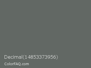 Decimal 14853373956 Color is a normal green color and the nearest color is Storm Dust #646463. Hex code #626864 and RGB value is rgb(98,104,100). In RGB color space, this color is composed of 38% red, 41% green, 39% blue, In CMYK color space, this color is composed of 6% cyan, 0% magenta, 4% yellow , 59% black , In HSL color space, this color has a hue angle of 140° , 3% saturation and 40% lightness.
