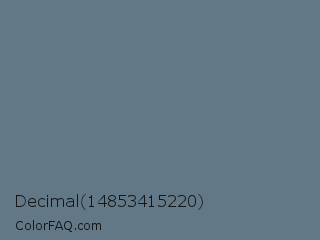 Decimal 14853415220 Color is a normal blue color and the nearest color is Pale Sky #6e7783. Hex code #627886 and RGB value is rgb(98,120,134). In RGB color space, this color is composed of 38% red, 47% green, 53% blue, In CMYK color space, this color is composed of 27% cyan, 10% magenta, 0% yellow , 47% black , In HSL color space, this color has a hue angle of 203° , 16% saturation and 45% lightness.