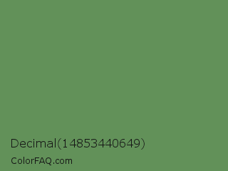 Decimal 14853440649 Color is a normal green color and the nearest color is Glade Green #61845f. Hex code #629159 and RGB value is rgb(98,145,89). In RGB color space, this color is composed of 38% red, 57% green, 35% blue, In CMYK color space, this color is composed of 32% cyan, 0% magenta, 39% yellow , 43% black , In HSL color space, this color has a hue angle of 110° , 24% saturation and 46% lightness.