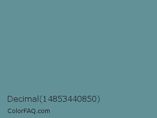 Decimal 14853440850 Color is a normal cyan color and the nearest color is Desaturated Cyan #669999. Hex code #629198 and RGB value is rgb(98,145,152). In RGB color space, this color is composed of 38% red, 57% green, 60% blue, In CMYK color space, this color is composed of 36% cyan, 5% magenta, 0% yellow , 40% black , In HSL color space, this color has a hue angle of 188° , 22% saturation and 49% lightness.