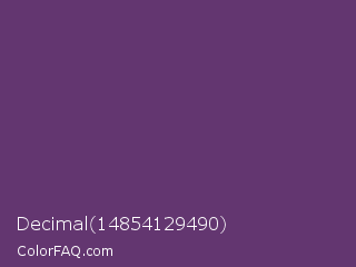 Decimal 14854129490 Color is a normal purple color and the nearest color is Imperial #602f6b. Hex code #633670 and RGB value is rgb(99,54,112). In RGB color space, this color is composed of 39% red, 21% green, 44% blue, In CMYK color space, this color is composed of 12% cyan, 52% magenta, 0% yellow , 56% black , In HSL color space, this color has a hue angle of 287° , 35% saturation and 33% lightness.