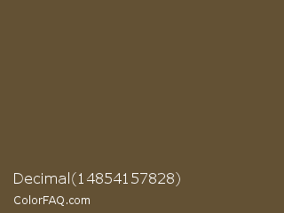 Decimal 14854157828 Color is a dark orange color and the nearest color is Shingle Fawn #6b4e31. Hex code #635134 and RGB value is rgb(99,81,52). In RGB color space, this color is composed of 39% red, 32% green, 20% blue, In CMYK color space, this color is composed of 0% cyan, 18% magenta, 47% yellow , 61% black , In HSL color space, this color has a hue angle of 37° , 31% saturation and 30% lightness.
