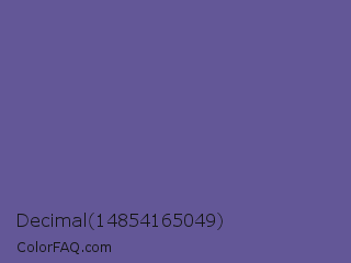 Decimal 14854165049 Color is a normal indigo color and the nearest color is Butterfly Bush #624e9a. Hex code #635797 and RGB value is rgb(99,87,151). In RGB color space, this color is composed of 39% red, 34% green, 59% blue, In CMYK color space, this color is composed of 34% cyan, 42% magenta, 0% yellow , 41% black , In HSL color space, this color has a hue angle of 251° , 27% saturation and 47% lightness.