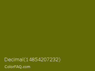 Decimal 14854207232 Color is a very dark yellow color and the nearest color is Bronze Yellow #737000. Hex code #636904 and RGB value is rgb(99,105,4). In RGB color space, this color is composed of 39% red, 41% green, 2% blue, In CMYK color space, this color is composed of 6% cyan, 0% magenta, 96% yellow , 59% black , In HSL color space, this color has a hue angle of 64° , 93% saturation and 21% lightness.