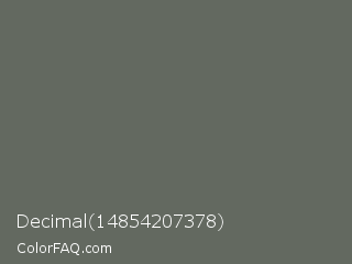 Decimal 14854207378 Color is a normal green color and the nearest color is Ironside Gray #676662. Hex code #636960 and RGB value is rgb(99,105,96). In RGB color space, this color is composed of 39% red, 41% green, 38% blue, In CMYK color space, this color is composed of 6% cyan, 0% magenta, 9% yellow , 59% black , In HSL color space, this color has a hue angle of 100° , 4% saturation and 39% lightness.
