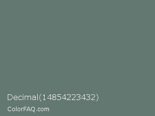 Decimal 14854223432 Color is a normal green color and the nearest color is Nevada #646e75. Hex code #637870 and RGB value is rgb(99,120,112). In RGB color space, this color is composed of 39% red, 47% green, 44% blue, In CMYK color space, this color is composed of 18% cyan, 0% magenta, 7% yellow , 53% black , In HSL color space, this color has a hue angle of 157° , 10% saturation and 43% lightness.