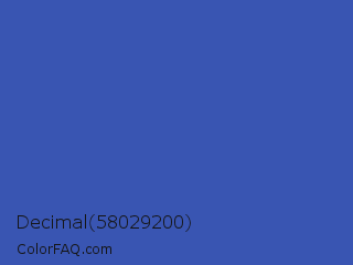Decimal 58029200 Color is a normal blue color and the nearest color is Violet Blue #324ab2. Hex code #3955b2 and RGB value is rgb(57,85,178). In RGB color space, this color is composed of 22% red, 33% green, 70% blue, In CMYK color space, this color is composed of 68% cyan, 52% magenta, 0% yellow , 30% black , In HSL color space, this color has a hue angle of 226° , 51% saturation and 46% lightness.