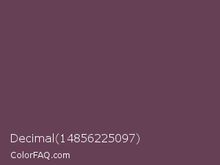 Decimal 14856225097 Color is a normal rose color and the nearest color is Eggplant #614051. Hex code #664155 and RGB value is rgb(102,65,85). In RGB color space, this color is composed of 40% red, 25% green, 33% blue, In CMYK color space, this color is composed of 0% cyan, 36% magenta, 17% yellow , 60% black , In HSL color space, this color has a hue angle of 328° , 22% saturation and 33% lightness.