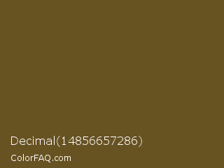 Decimal 14856657286 Color is a dark orange color and the nearest color is Field Drab #6c541e. Hex code #675222 and RGB value is rgb(103,82,34). In RGB color space, this color is composed of 40% red, 32% green, 13% blue, In CMYK color space, this color is composed of 0% cyan, 20% magenta, 67% yellow , 60% black , In HSL color space, this color has a hue angle of 42° , 50% saturation and 27% lightness.
