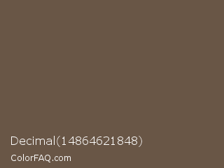 Decimal 14864621848 Color is a normal orange color and the nearest color is Umber #635147. Hex code #695646 and RGB value is rgb(105,86,70). In RGB color space, this color is composed of 41% red, 34% green, 27% blue, In CMYK color space, this color is composed of 0% cyan, 18% magenta, 33% yellow , 59% black , In HSL color space, this color has a hue angle of 27° , 20% saturation and 34% lightness.