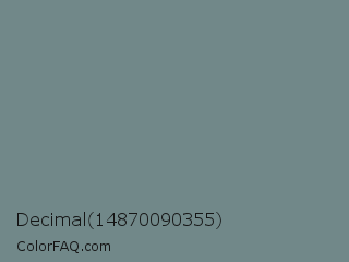Decimal 14870090355 Color is a normal cyan color and the nearest color is Blue Smoke #748881. Hex code #718889 and RGB value is rgb(113,136,137). In RGB color space, this color is composed of 44% red, 53% green, 54% blue, In CMYK color space, this color is composed of 18% cyan, 1% magenta, 0% yellow , 46% black , In HSL color space, this color has a hue angle of 183° , 10% saturation and 49% lightness.