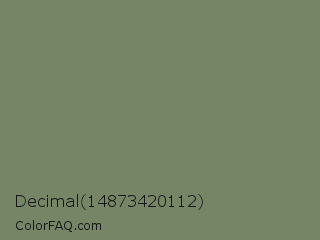 Decimal 14873420112 Color is a normal green color and the nearest color is Camouflage Green #78866b. Hex code #768566 and RGB value is rgb(118,133,102). In RGB color space, this color is composed of 46% red, 52% green, 40% blue, In CMYK color space, this color is composed of 11% cyan, 0% magenta, 23% yellow , 48% black , In HSL color space, this color has a hue angle of 89° , 13% saturation and 46% lightness.