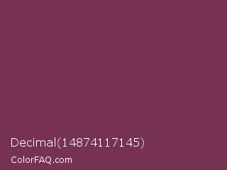 Decimal 14874117145 Color is a normal rose color and the nearest color is Cosmic #76395d. Hex code #773253 and RGB value is rgb(119,50,83). In RGB color space, this color is composed of 47% red, 20% green, 33% blue, In CMYK color space, this color is composed of 0% cyan, 58% magenta, 30% yellow , 53% black , In HSL color space, this color has a hue angle of 331° , 41% saturation and 33% lightness.