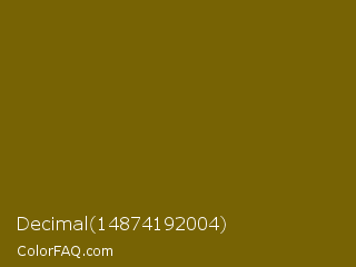 Decimal 14874192004 Color is a dark yellow color and the nearest color is Yukon Gold #7b6608. Hex code #776304 and RGB value is rgb(119,99,4). In RGB color space, this color is composed of 47% red, 39% green, 2% blue, In CMYK color space, this color is composed of 0% cyan, 17% magenta, 97% yellow , 53% black , In HSL color space, this color has a hue angle of 50° , 93% saturation and 24% lightness.