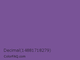Decimal 14881718279 Color is a normal purple color and the nearest color is Dark Lavender #734f96. Hex code #795397 and RGB value is rgb(121,83,151). In RGB color space, this color is composed of 47% red, 33% green, 59% blue, In CMYK color space, this color is composed of 20% cyan, 45% magenta, 0% yellow , 41% black , In HSL color space, this color has a hue angle of 274° , 29% saturation and 46% lightness.