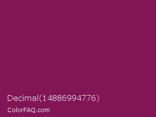 Decimal 14886994776 Color is a dark magenta color and the nearest color is French Plum #811453. Hex code #811556 and RGB value is rgb(129,21,86). In RGB color space, this color is composed of 51% red, 8% green, 34% blue, In CMYK color space, this color is composed of 0% cyan, 84% magenta, 33% yellow , 49% black , In HSL color space, this color has a hue angle of 324° , 72% saturation and 29% lightness.