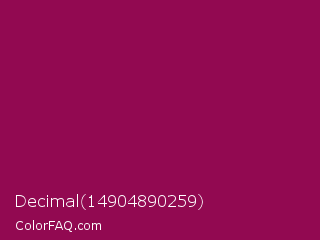 Decimal 14904890259 Color is a dark rose color and the nearest color is Cardinal Pink #8c055e. Hex code #920951 and RGB value is rgb(146,9,81). In RGB color space, this color is composed of 57% red, 4% green, 32% blue, In CMYK color space, this color is composed of 0% cyan, 94% magenta, 45% yellow , 43% black , In HSL color space, this color has a hue angle of 328° , 88% saturation and 30% lightness.
