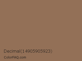 Decimal 14905905923 Color is a normal orange color and the nearest color is Leather #967059. Hex code #937057 and RGB value is rgb(147,112,87). In RGB color space, this color is composed of 58% red, 44% green, 34% blue, In CMYK color space, this color is composed of 0% cyan, 24% magenta, 41% yellow , 42% black , In HSL color space, this color has a hue angle of 25° , 26% saturation and 46% lightness.