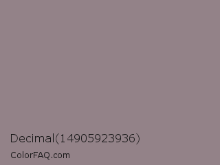 Decimal 14905923936 Color is a normal rose color and the nearest color is Venus #928590. Hex code #938288 and RGB value is rgb(147,130,136). In RGB color space, this color is composed of 58% red, 51% green, 53% blue, In CMYK color space, this color is composed of 0% cyan, 12% magenta, 7% yellow , 42% black , In HSL color space, this color has a hue angle of 339° , 7% saturation and 54% lightness.