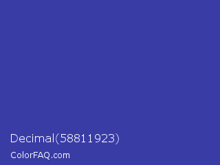 Decimal 58811923 Color is a normal blue color and the nearest color is Blue Pigment #333399. Hex code #3a3ca5 and RGB value is rgb(58,60,165). In RGB color space, this color is composed of 23% red, 24% green, 65% blue, In CMYK color space, this color is composed of 65% cyan, 64% magenta, 0% yellow , 35% black , In HSL color space, this color has a hue angle of 239° , 48% saturation and 44% lightness.