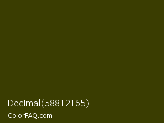 Decimal 58812165 Color is a very dark yellow color and the nearest color is Waiouru #363c0d. Hex code #3a3d01 and RGB value is rgb(58,61,1). In RGB color space, this color is composed of 23% red, 24% green, 0% blue, In CMYK color space, this color is composed of 5% cyan, 0% magenta, 98% yellow , 76% black , In HSL color space, this color has a hue angle of 63° , 97% saturation and 12% lightness.