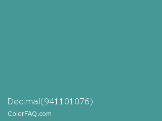 Decimal 941101076 Color is a normal cyan color and the nearest color is Zomp #39a78e. Hex code #469896 and RGB value is rgb(70,152,150). In RGB color space, this color is composed of 27% red, 60% green, 59% blue, In CMYK color space, this color is composed of 54% cyan, 0% magenta, 1% yellow , 40% black , In HSL color space, this color has a hue angle of 179° , 37% saturation and 44% lightness.