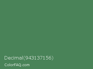 Decimal 943137156 Color is a normal green color and the nearest color is Middle Green #4d8c57. Hex code #498358 and RGB value is rgb(73,131,88). In RGB color space, this color is composed of 29% red, 51% green, 35% blue, In CMYK color space, this color is composed of 44% cyan, 0% magenta, 33% yellow , 49% black , In HSL color space, this color has a hue angle of 136° , 28% saturation and 40% lightness.