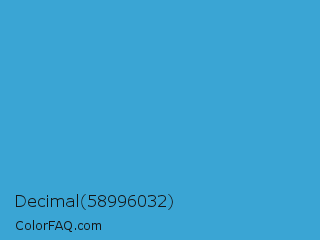 Decimal 58996032 Color is a normal blue color and the nearest color is Maximum Blue #47abcc. Hex code #3aa5d4 and RGB value is rgb(58,165,212). In RGB color space, this color is composed of 23% red, 65% green, 83% blue, In CMYK color space, this color is composed of 73% cyan, 22% magenta, 0% yellow , 17% black , In HSL color space, this color has a hue angle of 198° , 64% saturation and 53% lightness.