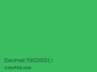 Decimal 59020051 Color is a normal green color and the nearest color is Medium Sea Green #3cb371. Hex code #3abc61 and RGB value is rgb(58,188,97). In RGB color space, this color is composed of 23% red, 74% green, 38% blue, In CMYK color space, this color is composed of 69% cyan, 0% magenta, 48% yellow , 26% black , In HSL color space, this color has a hue angle of 138° , 53% saturation and 48% lightness.