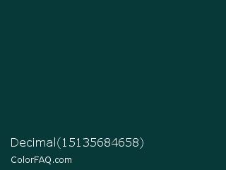 Decimal 15135684658 Color is a very dark cyan color and the nearest color is Tiber #063537. Hex code #063938 and RGB value is rgb(6,57,56). In RGB color space, this color is composed of 2% red, 22% green, 22% blue, In CMYK color space, this color is composed of 89% cyan, 0% magenta, 2% yellow , 78% black , In HSL color space, this color has a hue angle of 179° , 81% saturation and 12% lightness.