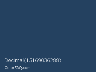 Decimal 15169036288 Color is a dark blue color and the nearest color is Rhino #2e3f62. Hex code #244160 and RGB value is rgb(36,65,96). In RGB color space, this color is composed of 14% red, 25% green, 38% blue, In CMYK color space, this color is composed of 63% cyan, 32% magenta, 0% yellow , 62% black , In HSL color space, this color has a hue angle of 211° , 45% saturation and 26% lightness.
