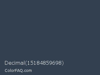 Decimal 15184859698 Color is a dark blue color and the nearest color is Charcoal #36454f. Hex code #324050 and RGB value is rgb(50,64,80). In RGB color space, this color is composed of 20% red, 25% green, 31% blue, In CMYK color space, this color is composed of 38% cyan, 20% magenta, 0% yellow , 69% black , In HSL color space, this color has a hue angle of 212° , 23% saturation and 25% lightness.