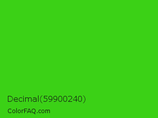 Decimal 59900240 Color is a normal green color and the nearest color is Harlequin Green #46cb18. Hex code #3bd116 and RGB value is rgb(59,209,22). In RGB color space, this color is composed of 23% red, 82% green, 9% blue, In CMYK color space, this color is composed of 72% cyan, 0% magenta, 89% yellow , 18% black , In HSL color space, this color has a hue angle of 108° , 81% saturation and 45% lightness.