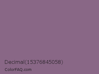 Decimal 15376845058 Color is a normal magenta color and the nearest color is Chinese Violet #856088. Hex code #896786 and RGB value is rgb(137,103,134). In RGB color space, this color is composed of 54% red, 40% green, 53% blue, In CMYK color space, this color is composed of 0% cyan, 25% magenta, 2% yellow , 46% black , In HSL color space, this color has a hue angle of 305° , 14% saturation and 47% lightness.