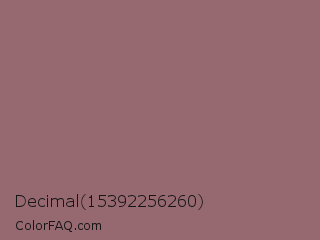 Decimal 15392256260 Color is a normal red color and the nearest color is Copper Rose #996666. Hex code #966870 and RGB value is rgb(150,104,112). In RGB color space, this color is composed of 59% red, 41% green, 44% blue, In CMYK color space, this color is composed of 0% cyan, 31% magenta, 25% yellow , 41% black , In HSL color space, this color has a hue angle of 350° , 18% saturation and 50% lightness.