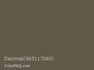 Decimal 965117065 Color is a normal orange color and the nearest color is Umber #635147. Hex code #605849 and RGB value is rgb(96,88,73). In RGB color space, this color is composed of 38% red, 35% green, 29% blue, In CMYK color space, this color is composed of 0% cyan, 8% magenta, 24% yellow , 62% black , In HSL color space, this color has a hue angle of 39° , 14% saturation and 33% lightness.