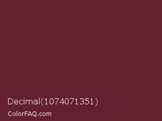 Decimal 1074071351 Color is a dark red color and the nearest color is Wine Berry #591d35. Hex code #632031 and RGB value is rgb(99,32,49). In RGB color space, this color is composed of 39% red, 13% green, 19% blue, In CMYK color space, this color is composed of 0% cyan, 68% magenta, 51% yellow , 61% black , In HSL color space, this color has a hue angle of 345° , 51% saturation and 26% lightness.